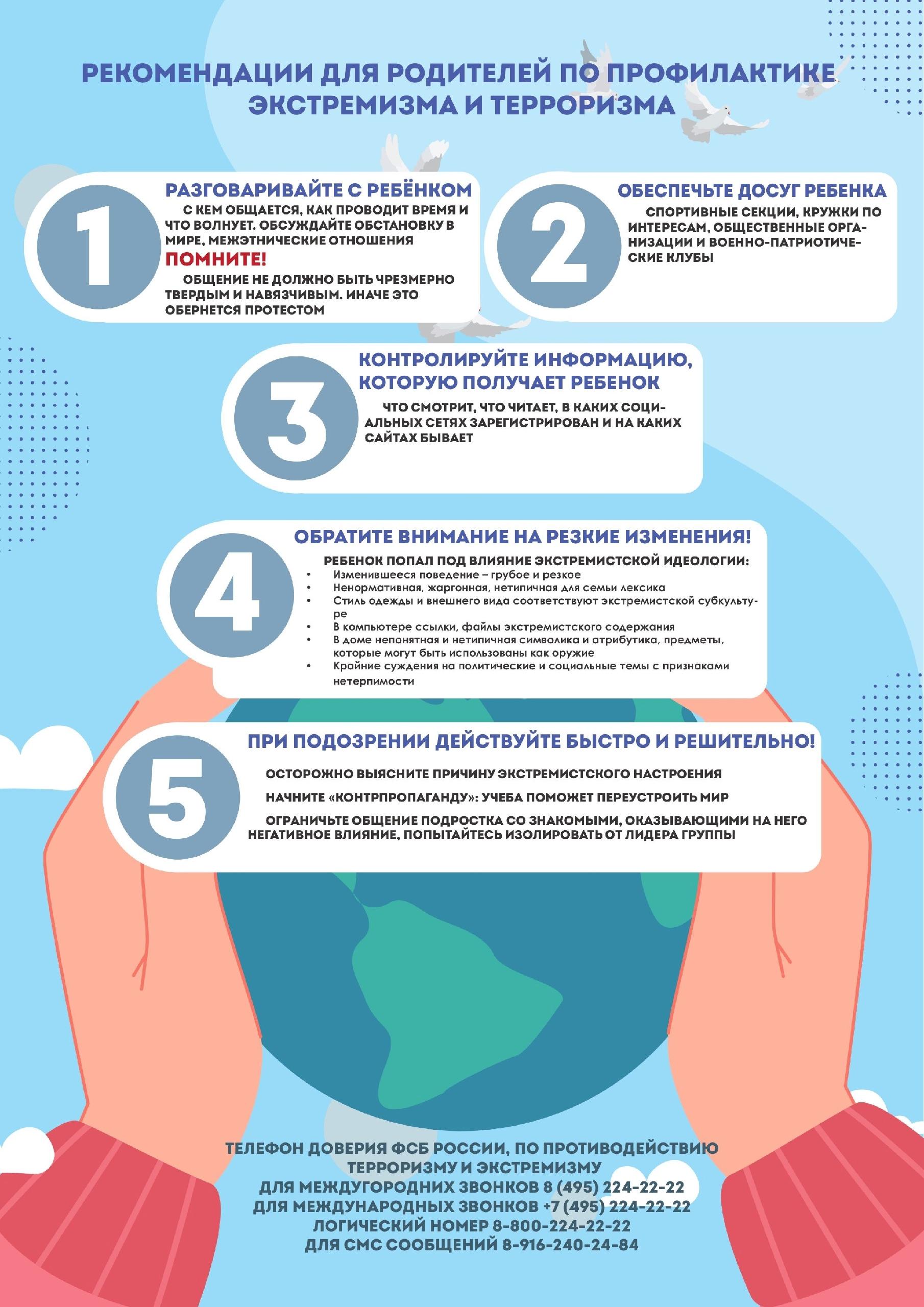Предлагаем вашему вниманию рекомендации, которые помогут вам защитить ваших детей от идеологии насилия и ненависти: