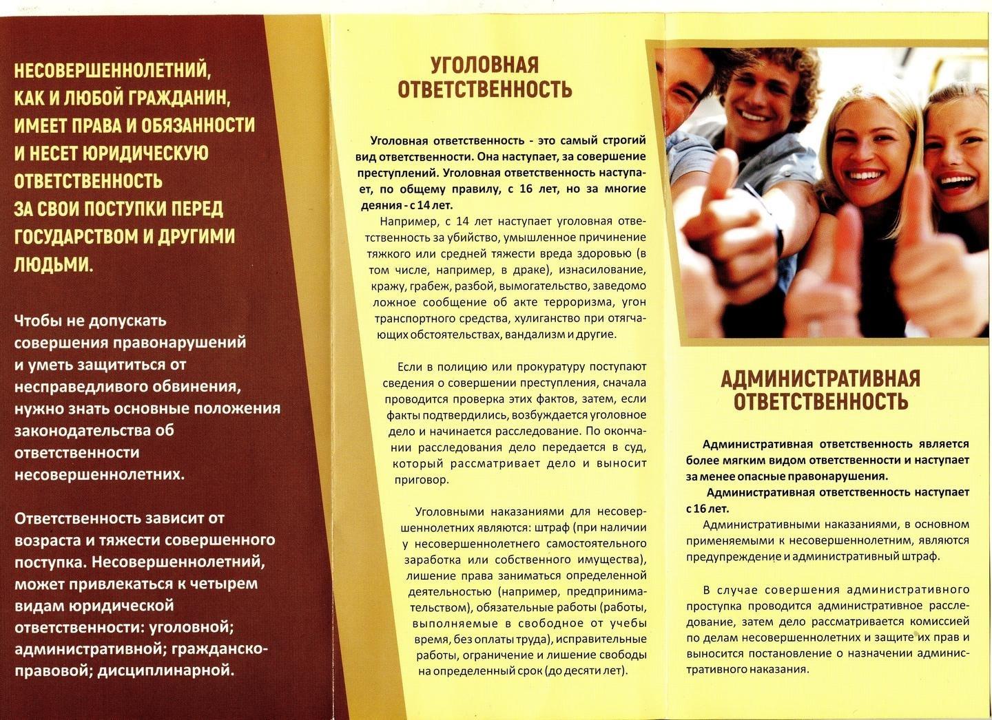 Как все граждане нашей страны, ты несешь ответственность за нарушение прав других людей и совершение противозаконных поступков. За нарушение или неисполнение законов ты можешь быть привлечен к ответственности: