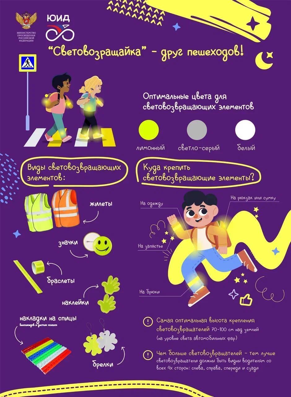 Сохраняйте карточку, прикрепляйте «светоотражайку» на одежду или рюкзак себе и детям. Безопасность начинается с простых привычек!