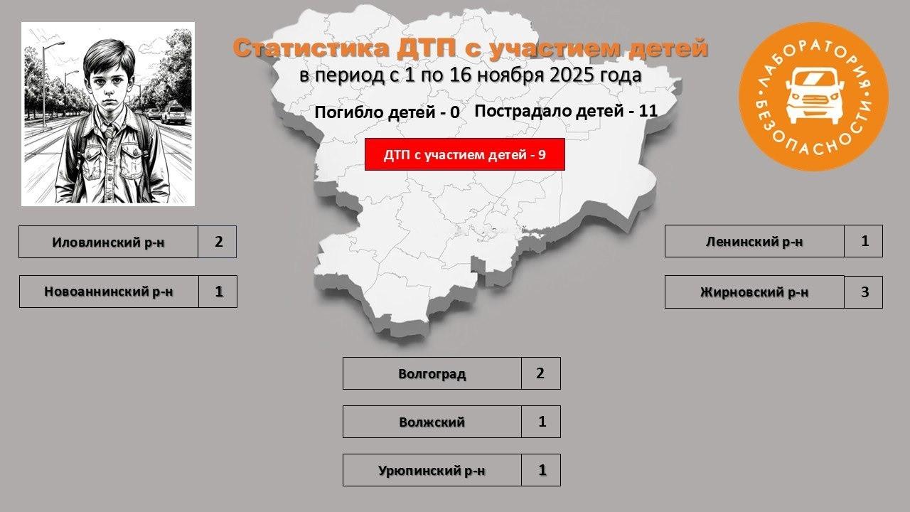 Статистика ДТП с участием несовершеннолетних в период с 1 по 16 ноября 2025 г.