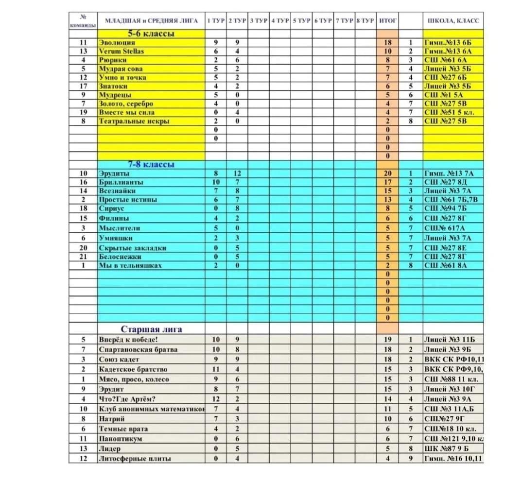Итоги 2 тура районной игры "Что? Где? Когда? "
