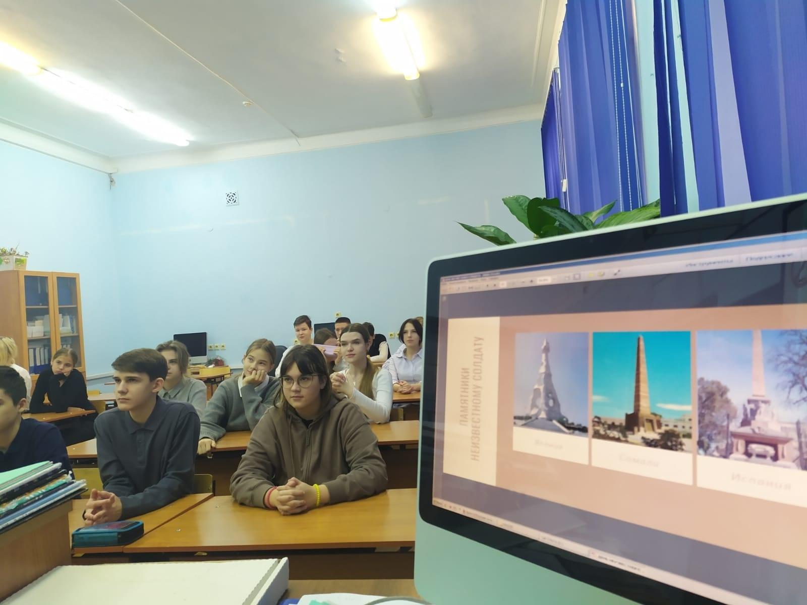 Сегодня в нашей гимназии прошли классные часы для обучающихся 6- 8- х классов: «Имя твоё неизвестно, подвиг твой бессмертен!», посвященный Дню Неизвестного солдата.
