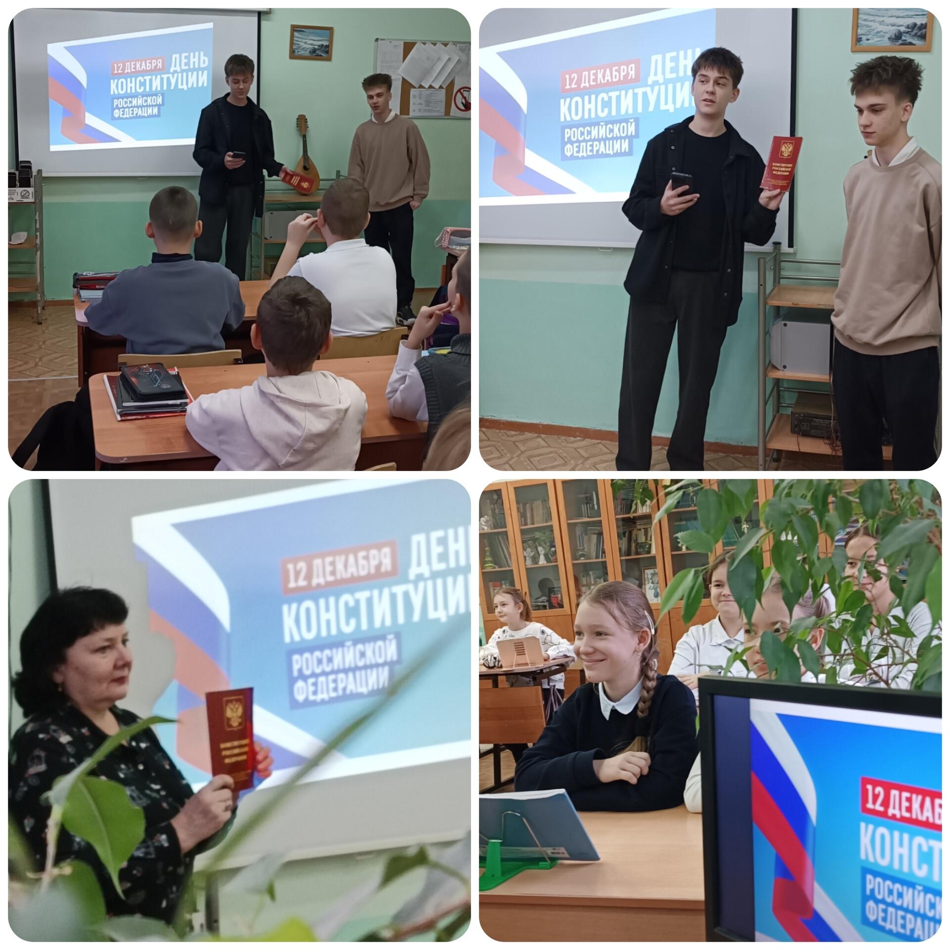 Сегодня мы говорили о значении этого главного закона и о том, как важно его знать и уважать с нашими гимназистами 5-х классов. Большое спасибо учащимся 10 класса за проведение данного мероприятия.