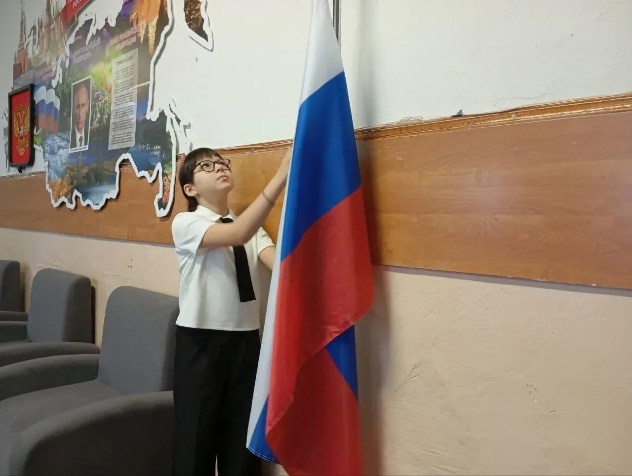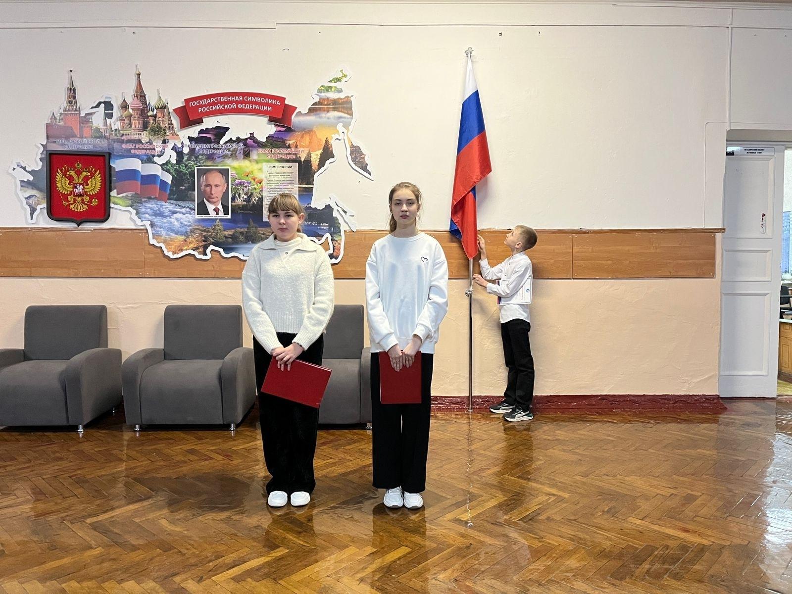 Утро понедельника 10 ноября в нашей школе традиционно началось с торжественной линейки, церемонии поднятия Государственного флага Российской Федерации и исполнения гимна. Почётное право поднять флаг было предоставлено учащейся 5 б класса Вдовенко Виктории