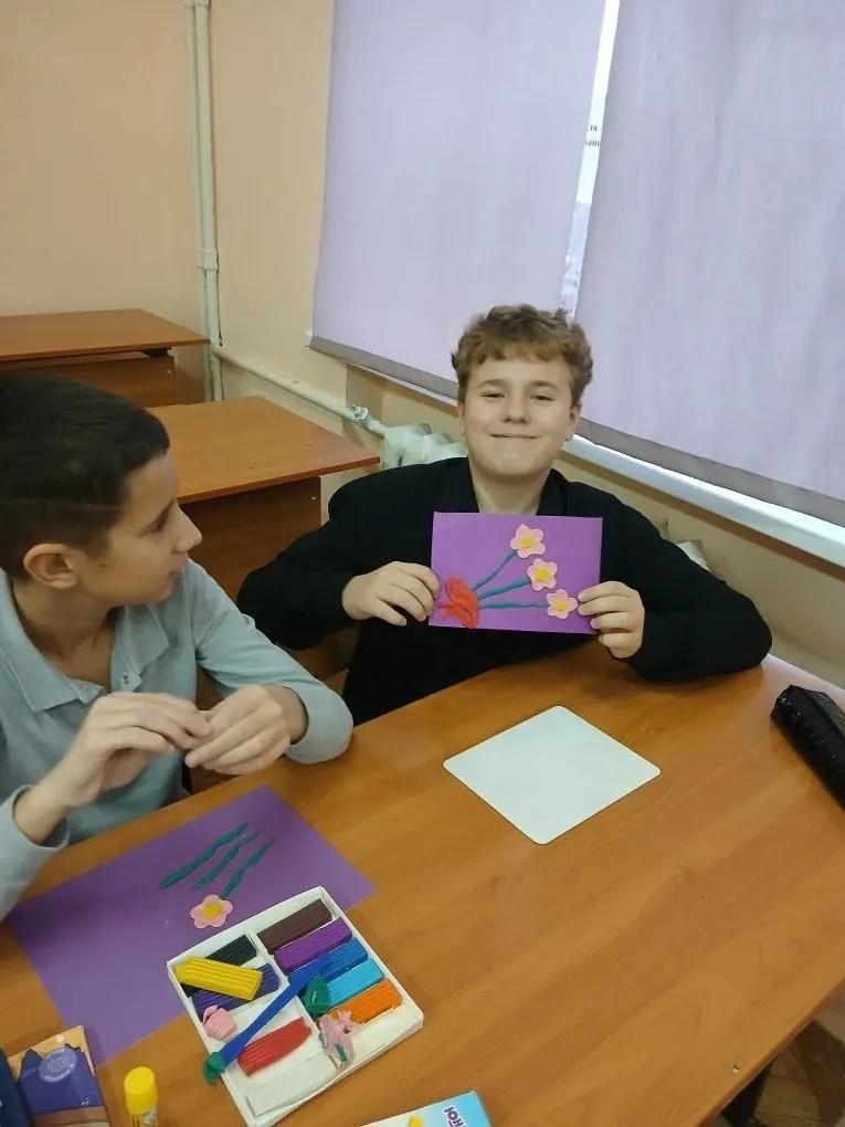 На классном часу учащиеся 6 "А" класса активно готовились ко Дню Матери. Ребята в рамках КТД сами придумали и изготовили для мам замечательные открытки.