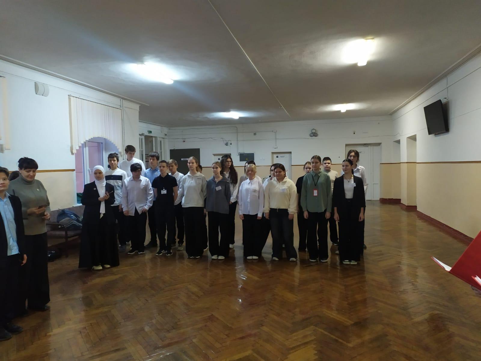 Утро понедельника 17 ноября 2025 года в гимназии традиционно началось с торжественной линейки, церемонии поднятия флага и исполнения гимна Российской Федерации.