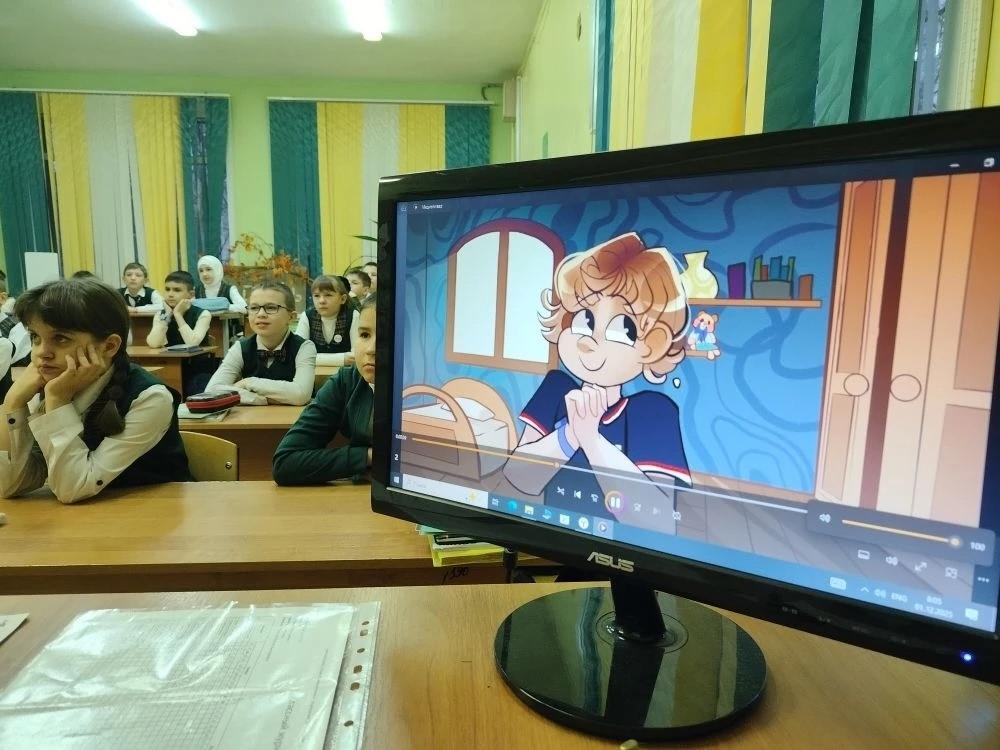 В целях профилактики вредных привычек 12.11.2025 социальный педагог гимназии, Атарщикова Екатерина Сабировна, провела в 5 «А» классе занятие с просмотром мультфильмов из серии «Команда Познавалова».