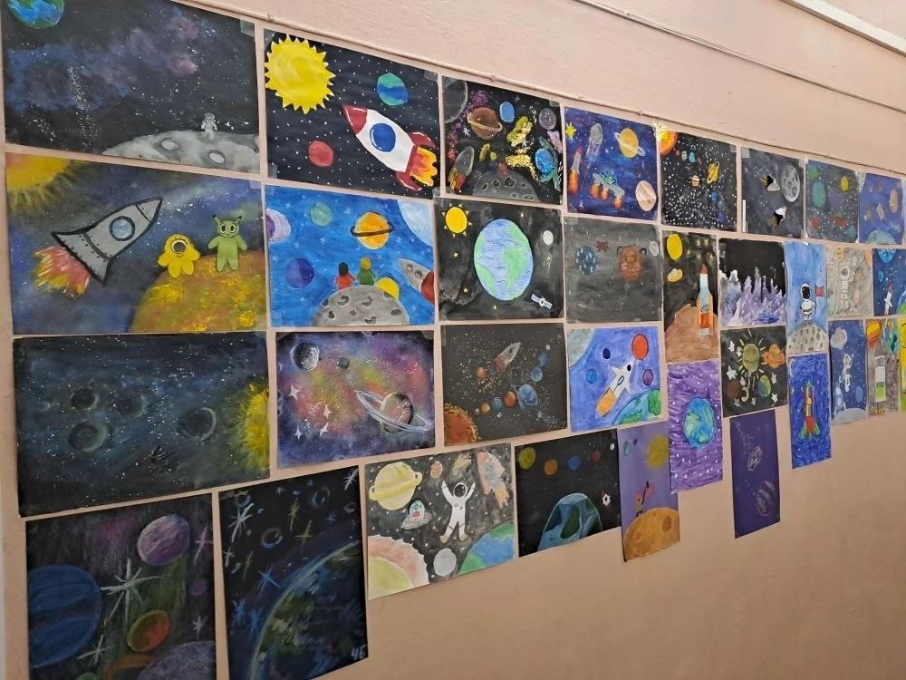 В рамках проходящей по всей стране Неделе космоса учащиеся начальной школы гимназии приняли активное участие в выставке рисунков "Космос глазами детей".