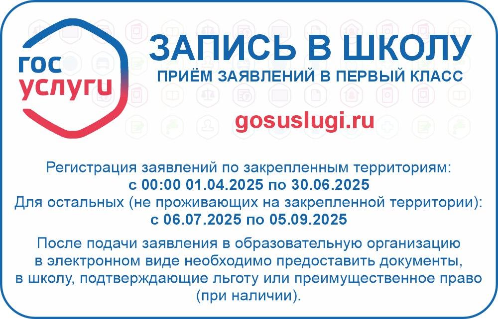 В соответствии с приказом Министерства просвещения Российской Федерации от 2 сентября 2020 г. № 458 «Об утверждении порядка приема граждан на обучение по образовательным программам начального общего, основного общего и среднего общего образования» (с изменениями) старт приемной кампании в 1-е классы на 2025/2026 учебный год начнется 1 апреля 2025 года.01.04.2025 г. стартует I этап приема и регистрации заявлений родителей (законных представителей) о зачислении детей в первый класс на 2025/2026 учебный год.